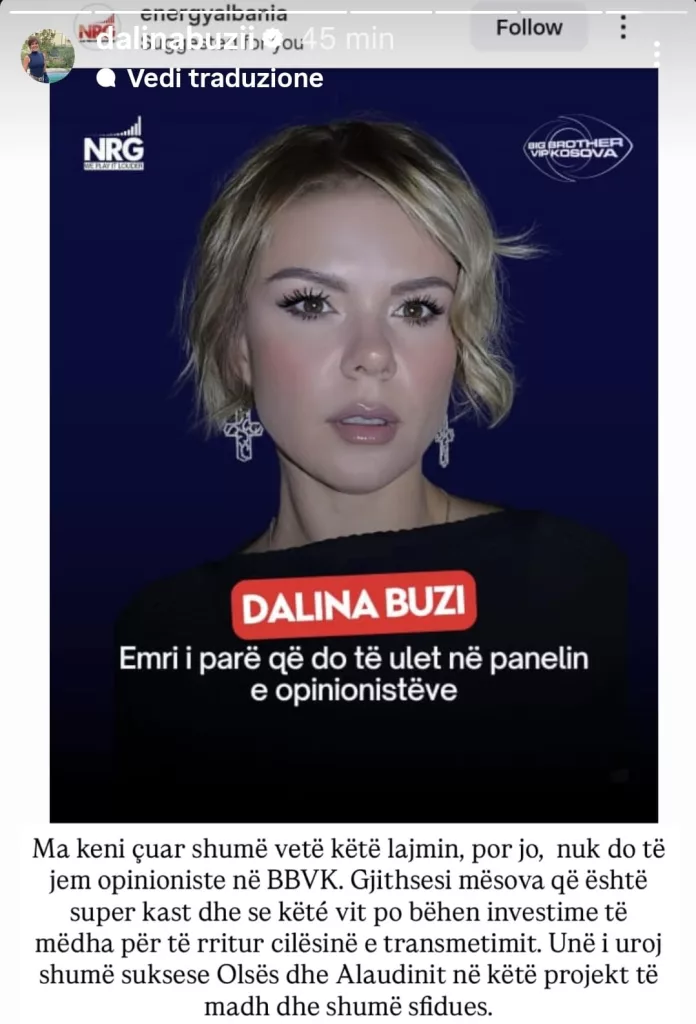 Një ndër to ka qenë producentja Dalina Buzi, e cila prej disa ditësh ishte përfolur se do të ulej në një nga kolltuqet e opinionistëve në edicionin e ri të Big Brother në Kosovë, por mesa duket nuk do të jetë kështu.
