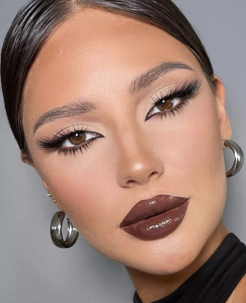 Sy, buzë dhe faqe në një ton të vetëm për një pamje harmonike.