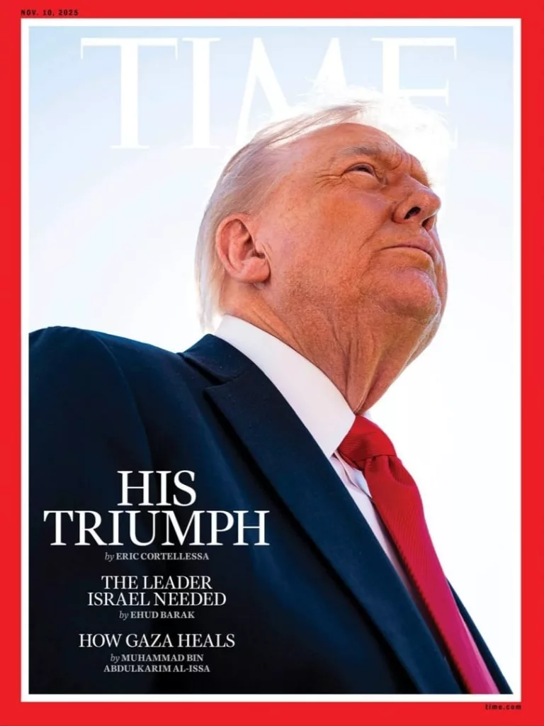 Kopertina e fundit e titulluar “His Triumph”, e cila sheh portretin e Trump, në një shkrim të dedikuar atij për meritat e arritjes së një paqeje të përkohëshme në Gaza, është kritikuar nga ky i fundit, për imazhin, jo për përmbajtjen. Ai ka akuzuar redaksinë e “Time” se foto e përzgjedhur për kopertinën nuk është aspak e bukur dhe nuk i bën “nder”.